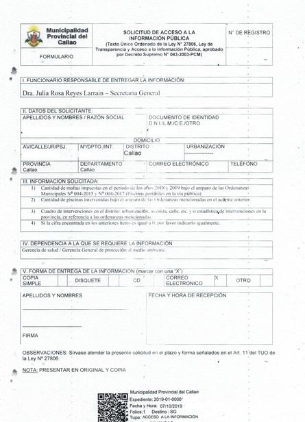 Octubre de 2019 El día 07 ingresé, ante la Municipalidad Provincial del Callao, una nueva Solicitud de Acceso a la Información Pública, la misma que consulta sobre tres puntos: 1. ...