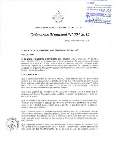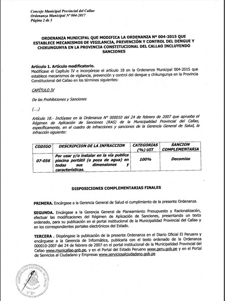 Callao, año 2018. La Municipalidad del Callao, con fecha 27 de febrero de 2017 (fines de ese verano) publicó la Ordenanza Municipal Nº 004-2017 que modificaba la Ordenanza Nº 004-2015. ...